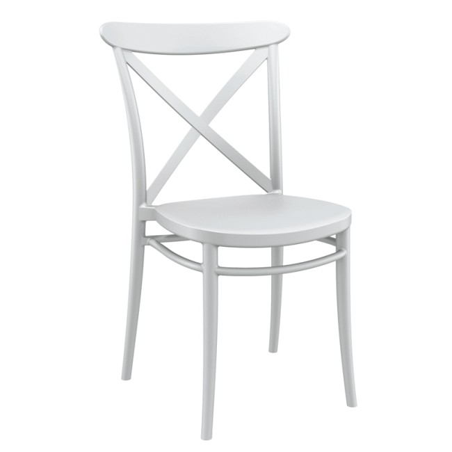 Καρέκλα CROSS του οίκου Siesta, με design υψηλής αισθητικής. Κατασκευασμένη από πολυπροπυλένιο με 20% fiber glass για απόλυτη αντοχή στον χρόνο. Κατάλληλη για εσωτερική και εξωτερική χρήση, στοιβαζόμενη,ιδανική επιλογή και για επαγγελματικούς χώρους.Πιστοποιημένο προϊόν από τον Ιταλικό οίκο CATAS.